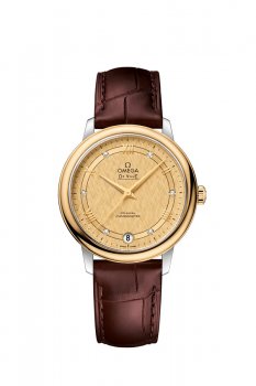 La collection OMEGA De Ville Prestige à attire un public large et fidele avec son design classique et elegant. Ces garde-temps se caracterisent par un style pur avec des finitions de luxe intemporelles. Ce modele est dote d'un cadran champagne avec un motif en soie et une finition opaline. Les mains sont plaquees ou plaquees et les marqueurs d'heures comprennent six porte-diamants ou plaques ainsi que des chiffres romains plaques. Il y à une fenêtre de date à 6 heures. Le boitier de 32,7 mm est Inoxydable Acier et 18K ou jaune et est presente sur un bracelet en cuir brun. Au c?ur de ce garde-temps se trouve le Co-Axial Calibre 2500.