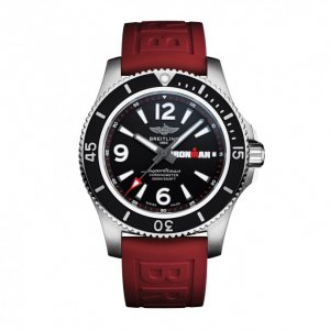 Le Breitling SuperOcean 44 IRONMAN est une eDITION LIMITEE de 300 pieces creees à l'occasion du partenariat de la Marque :avec la franchise Ironman de la société Wanda Sports Group. Il porte le logo de l'evenement sportif sur le cadran et le dossier, et il est attache au poignet au moyen d'une sangle en caoutchouc rouge.