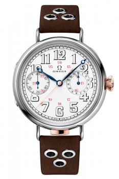 Pour cet ambitieux garde-temps de 47,50 mm, un calibre CHRO original de 18'''' à été recupere dans les vo?tes du musee OMEGA. Datant de 1913, c'est exactement le même mouvement utilise dans les premiers chronographes de poignet d'OMEGA. Grace à un processus special et dedie, le calibre prise à été delicatement renove par les experts de l'Atelier de Tourbillon d'OMEGA et à donne un nouveau souffle de vie, par la suite nomme comme le nouveau calibre OMEGA 3018. Pour le design exterieur, OMEGA à suivi de pres le look traditionnel d'un chronographe-bracelet OMEGA de 1913, avec des details classiques tels que le rivété Bracelet en cuir et le cadran en email Blanc avec des mains Bleud "Empire" et des chiffres arabes creux. Des materiaux modernes ont egalement été inclus, tels que 18K Blanc ou pour le cas, et 18K Sedna ou pour la couronne et le poussoir. Le design classique dispose egalement d'un caseback eclos, qui peut être retourne ouvert pour reveler le mouvement place derriere saphir-cristal. Seulement 18 de ces chronographes EDITION LIMITEE ont été realises.
