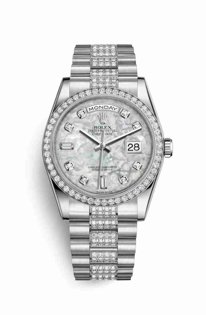 Réplique Montre Rolex Day-Date 36 118346 Blanc serti de nacre serti de Cadran
