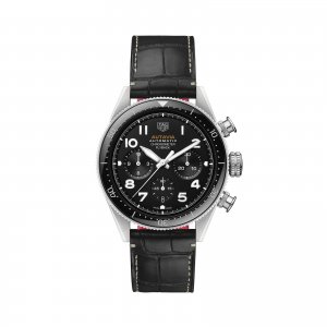 Presente dans un boitier en acier de 42 mm associe a un bracelet en alligator noir, ce classique entierement noir Le modele Autavia rend hommage a l'heritage inspire de l'aviation de la collection.